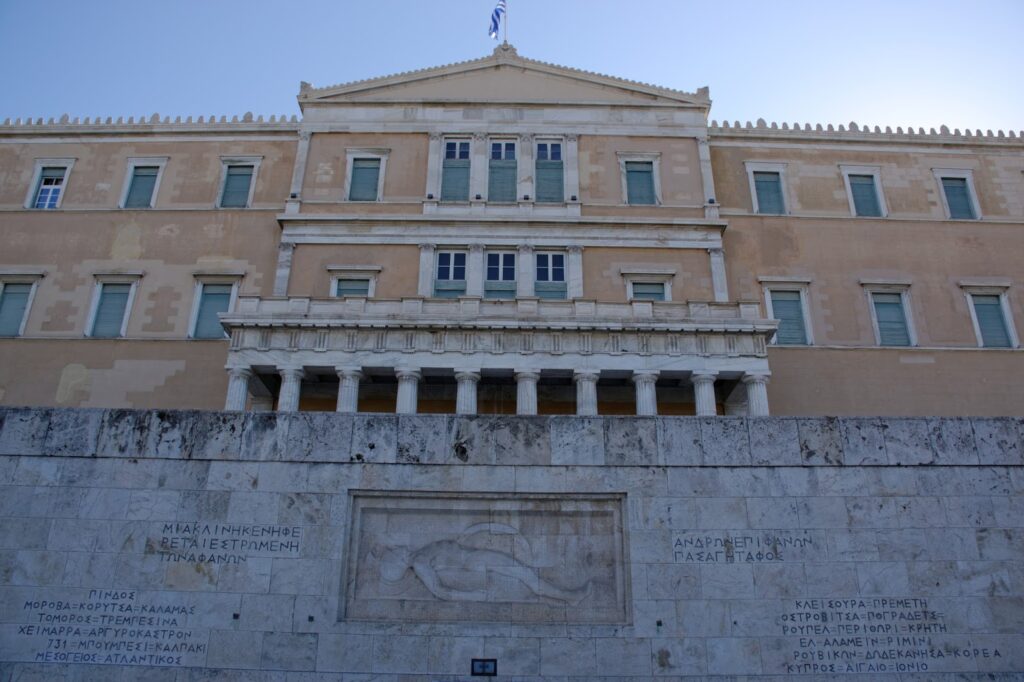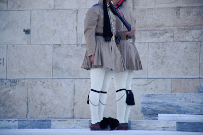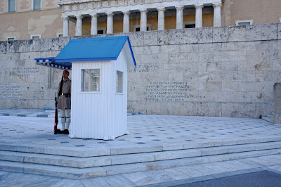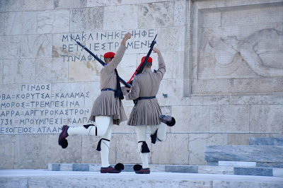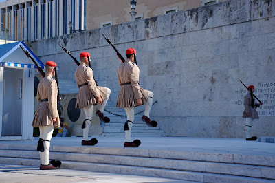 Il s’agit du remplacement des soldats postés à l’entrée du Parlement. Il a lieu sur la place située juste devant le Parlement, la place Syntagma, vous trouverez l’arrêt de métro du même nom juste en-dessous. Le « défilé » commence environ à ’30 jusqu’à à peu près ’50 de chaque heure. Ensuite, la réelle relève arrive à pile, le changement se fait toutes les heures, devant la tombe du soldat inconnu.