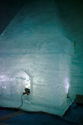 Les tapis au sols et les aménagements, pas très esthétiques gâchent un peu la première impression du lieu mais une fois que vous avez pris le réflexe de regarder en l’air, vous oubliez un petit peu ce qu’il se passe sous vos pieds. Après tout, sans cela, nous ne pourrions pas descendre et le sol serait une véritable patinoire. Visiblement, l’accès se fait également à pieds mais j’avoue ne pas avoir cherché à trouver le chemin – il devait probablement être recouvert de neige. La grotte de glace est retaillée chaque année.