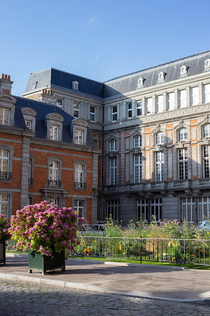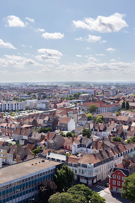 A Boulogne, c’est en bord de mer que nous avons commencé notre visite. D’abord au bord de la plage, puis vers le port d’où partaient avant les ferrys. Nous y étions à marée basse, si on fait abstraction des odeurs, la balade est plutôt sympa. Camille m’a expliqué qu’il était plus impressionnant de venir à marée haute car les bateaux sont alors à notre hauteur et la sensation de grandeur est alors très vive proche de ces immenses bateaux. Nous avons ensuite fait un tour dans la vieille ville. Je vous dirai bien qu’elle est entièrement piétonne mais ce n’est pas le cas, bien que les routes soient toutes pavées. Cela n’empêche que très peu de voitures circulent et que la balade dans la ville est vraiment chouette. Les rues sont étroites, les bâtiments ont tous un air de famille. Pour avoir la vue sur la mer, il vous faudra monter sur les remparts. J’ai beaucoup aimé l’architecture des bâtiments sur la place de la Résistance. Devant la mairie, il y a chaque année un nouveau thème mis en avant dans un parc. Pour nous, c’était les superstitions. Ils font un décor sur cette thématique et racontent plein d’anecdotes, quelles sont les superstitions, d’où viennent-elles, etc.