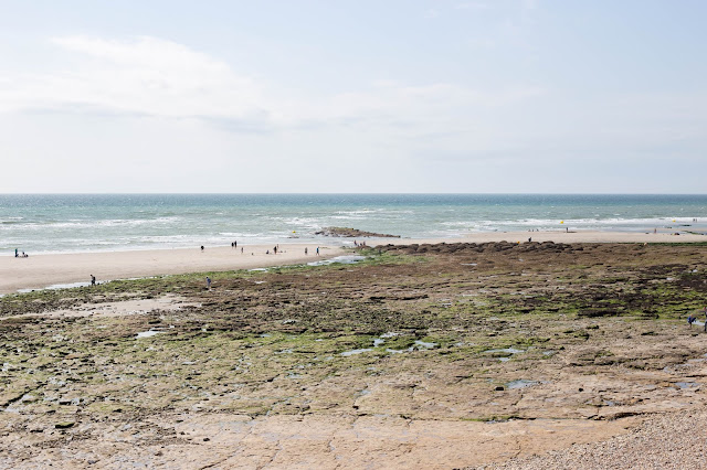 Nous n’avons pas du tout fait exprès d’y être à marée basse, mais le spectacle était magnifique. Je ne crois pas que j’avais déjà vu des marées aussi basse avant ce voyage. Et je n’en ai jamais vu autant que durant ce voyage d’ailleurs. Le Fort est avancé là, les pieds dans la mer. Vous avez la possibilité de le visiter mais nous avons préféré marcher autour de lui. La marée basse m’a fait découvrir toutes les merveilles que cache la mer : rochers, coquillages, algues. Les familles viennent là, à la pêche au crabe, au coquillages ou tout autre chose. C’est un charmant spectacle à voir. Quant au fort, sa forme arrondie lui donne un quelque chose de spécial – j’imagine le spectacle que cela doit être quand les vagues se déchaînent contre lui les jours de tempête. Si comme moi vous avez des doutes, sachez que ce phare s’appelle également fort Mahon ou fort Vauban. Si ce fort est si connu, c’est parce qu’il est le seul encore debout et ayant été préservé de toute la côte entre Cherbourg et la Belgique.
