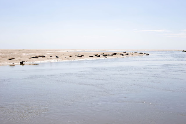 Camille avait repéré sur Internet que nous pouvions voir les phoques à marée basse. Du coup, nous sommes allées les voir. Le coin est facile à trouver. Vous ne pourrez pas approcher des animaux car un bras de mer sépare l’endroit où ils se mette de la terre ferme. La baie d’Authie est un merveilleux espace qui mérite plus d’attention lors d’un plus long séjour. Pour ceux qui en ont la possibilité, faites-le en avion/hélicoptère ou envoyez le drone car la vue d’en haut donne des étoiles dans les yeux !