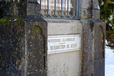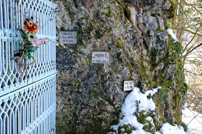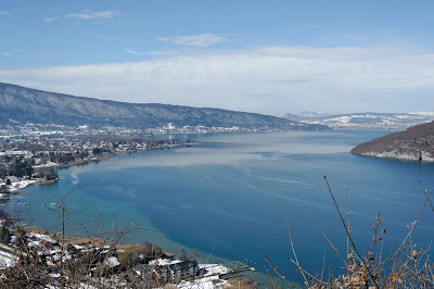 « Grotte de Notre-Dame du Lac » pour atteindre le belvédère. La montée vers la grotte est jalonnée d’édifices de pierres relatant la vie de Jésus. La randonnée est facile malgré la neige (15minutes pour arriver à la grotte) – j’étais en boots et je n’ai pas glissé, par contre, oubliez les baskets lisses parce que ça va être assez compliqué. Bien sûr, inutile de vous y risquer en sandales l’été ! Depuis l’esplanade devant la Grotte, vous aurez une vue superbe sur le lac d’Annecy. Un paysage apaisant et reposant. Nous avons continué la balade un peu plus haut (où il y a un banc et une nouvelle vue sur le lac), la neige étant devenue trop glissante pour monter plus haut nous avons rebroussé chemin.