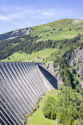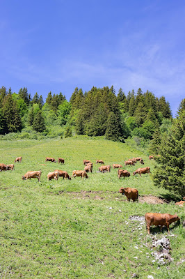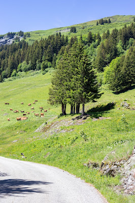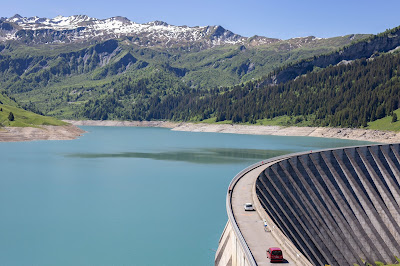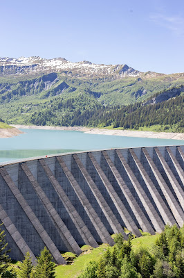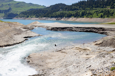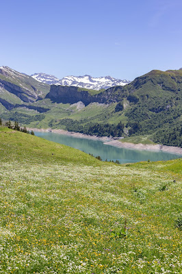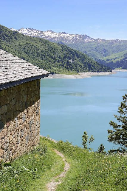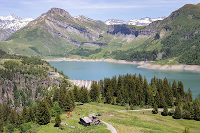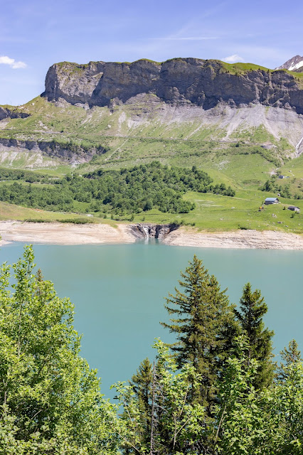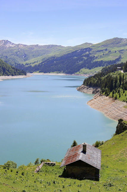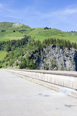 Nous avons commencé à droite, sur la rive gauche, en direction du barrage. Nous nous sommes garés sur un petit parking qui surplombe le barrage. Tant de beauté en un seul endroit est presque incroyable. Le barrage, en arc de cercle et déjà digne d’un bâtiment architectural, quand à la forêt que l’on aperçoit en contrebas grimpant jusqu’au montagnes procure également des sensations d’émerveillement. Descendez à pieds, et traversez le barrage – les voitures peuvent circuler mais vous le ferez ensuite (ou avant peu importe). Arrivez au bout, revenez sur vos pas et reprenez la voiture (sauf si vous avez le courage de grimper à pieds jusqu’aux pâturages – je pense qu’il doit y avoir une bonne grosse heure de marche, voire même 1h30). A la base, on avait commencé à y aller à pieds, puis on s’est rendu compte que les perspectives nous avaient joué un sacré tour et qu’ils étaient, beaucoup, beaucoup plus loin. Prenez le temps de monter jusqu’aux chalets, de là-haut vous aurez une toute autre vue – toujours aussi jolie. Si vous avez le temps, l’envie, de nombreux départs de randonnées se situent un peu plus haut que les premiers chalets. Face à vous, une bloc de pierre se dresse, tout en haut d’une des montagnes – il s’agit de la Pierra Menta, une boucle de randonnée vous y mène, mais il faudra compter 12h et donc être bien entraîné.