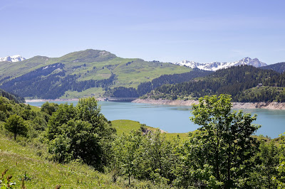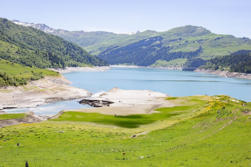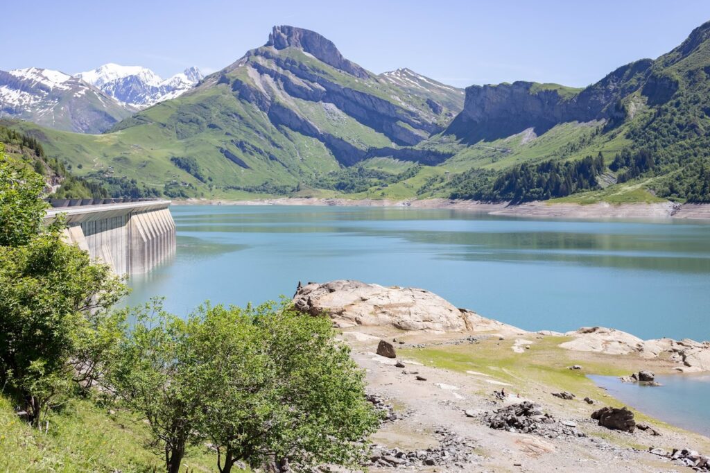Le lac de Roselend est à 1h30 d’Annecy, juste au-dessus de la station de ski Arêches-Beaufort et à environ 30 minutes d’Albertville. La route sinueuse qui nous y mène offre déjà des vues à couper le souffle (attention au vertige, les routes sont étroites, il y a beaucoup de vélo et on surplombe assez souvent le précipice). Enfin, vous arriverez près du lac. Celui-ci se dévoile, petit à petit. Son bleu-vert, presque turquoise se détache par petits bouts, au milieu de toute cette végétation. Lorsque vous arrivez depuis Albertville, la route débouche en plein milieu du lac. A gauche ou à droite, cela n’a pas d’importance, mais faites tout de même les deux côtés car les paysages n’ont rien à voir. La rive gauche est accessible en voiture, la rive droite (en face de vous quand vous arrivez depuis Beaufort) ne l’est pas mais vous devez pouvoir y randonner.