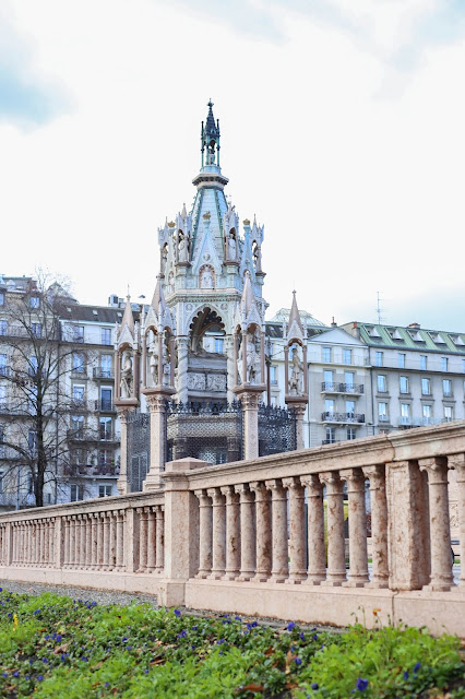 Ce monument est l’un de ceux devant lequel je passe systématiquement chaque fois que je viens à Genève. On a l’impression qu’il est fait en dentelle, dressé là, en plein milieu d’une petite place. Il s’agit en fait d’un monument funéraire. le duc Brunswick a légué toute sa fortune à la ville en échange de funérailles dignes de ce nom.