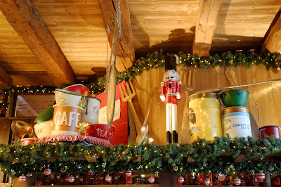 Que vous arriviez d’un côté ou de l’autre de la route qui mène au Hameau, vous le repérerez facilement car un petit lutin fait la circulation et nous indique où nous garer. Nous n’avons bien sûr pas eu de queue afin d’entrer. L’accueil se fait par le magasin.