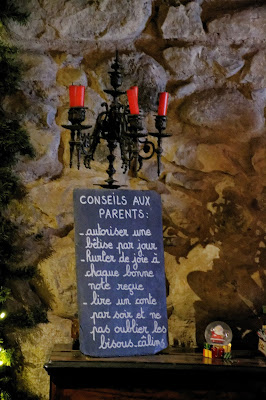 Là-dedans, tout est sombre. Nous avons été accueillis par le Père Fouettard lui-même qui ne joue pas son rôle à moitié. Après avoir fait peur à notre petite C. c’est à nous qu’il s’est adressé sur le même ton sec avec sa grosse voix. On était tellement occupées à rassurer la petite et pas mal impressionnées par l’allure du Père Fouettard et de sa maison que nous avons oublié de lui dire bonjour – et il n’a pas manqué de nous le faire remarquer.