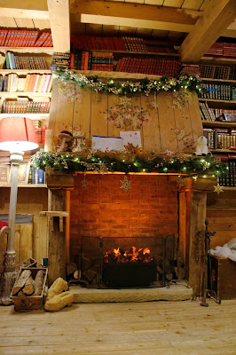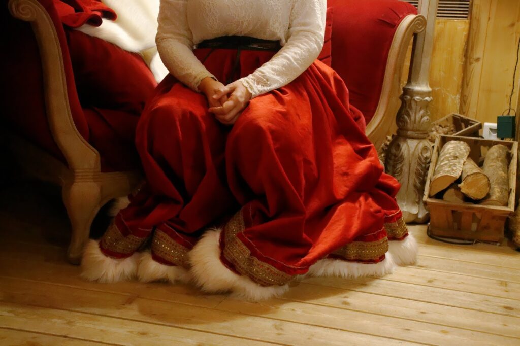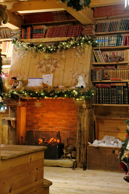 A l’arrière, vous trouverez la pièce la plus cosy et chaleureuse du site. Des étagères de livres couvrent les murs, un canapé rouge est posé à côté de la cheminée, et des gradins sont juste en face. Ici, vous allez pouvoir écouter l’histoire que va vous raconter la Mère Noël. Nous, nous l’avons adorée ! Notre Mère Noël, toute joyeuse et vraiment très belle, très enjouée et en toute sincérité est arrivée enchantée de voir tout ce petit monde qui l’attendais. C’est incontestablement ma pièce favorite.