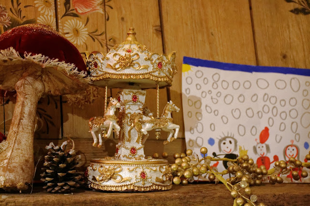 La maison de la Mère Noël est toute en élégance, très féminine et décorée avec goût. Vous entrez dans une première pièce où vous verrez ses créations de couture, son sapin de Noël.