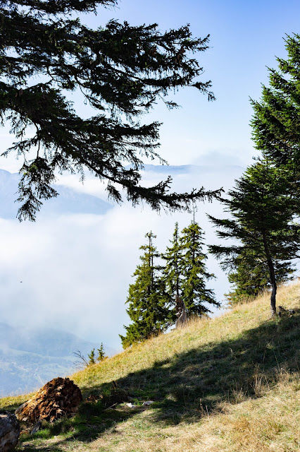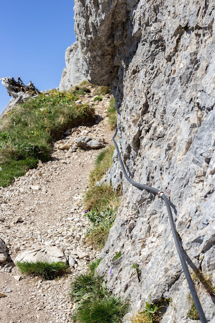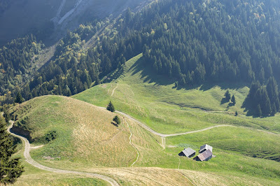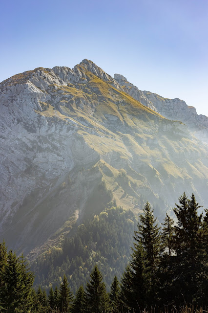 Nous étions très étonnés du départ de la randonnée car nous descendons énormément pour ensuite tout remonter. Les sentiers sont magnifiques, tout est sujet à l’émerveillement – encore plus alors que l’automne s’est déjà installé. Vous traversez de grands espaces plats, tout comme vous montez de raides flancs de montagne. Au niveau de La Roche Murraz, c’est assez impressionnant car vous passez à flanc de falaise, il y a même une corde pour vous tenir et vous escaladez ensuite une partie de la roche (évitez de penser qu’il vous faudra redescendre car sinon vous ne monterez jamais, surtout si vous êtes sujet au vertige). A ce stade là, Emalou nous attendais déjà plus bas, mais nous voulions quand même monter encore un peu. Notre joie a été immense quand nous avons découvert ce qu’il y avait derrière ce rocher. Une immense étendue verte, une plaine de montagne vraiment sublime. Nous ne sommes donc pas allés jusqu’en haut, mais ce n’est que partie remise. Une fois là-haut, vous avez l’impression qu’il ne vous reste que quelques pas à faire pour finalement arriver aux Dents de Lanfon.