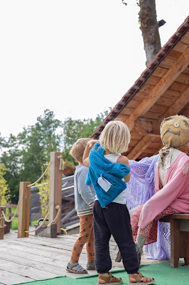 Depuis 2 ans que je les gardais, je n’avais encore jamais amené les enfants au parc des Épouvantails. Nous nous y sommes donc rendus pour y passer une après-midi. Ce fût une belle surprise que de trouver le parc ouvert, et complètement vide. En fait, rien n’était écrit sur leur site mais le parc ferme l’hiver. Il avait donc déjà fermé le weekend précédent. Les employés et bénévoles y travaillant l’été étaient donc en train de vider le parc, et de tout ranger et mettre à l’abri pour la période hivernale. Avec la condition de ne pas toucher à tout et n’importe quoi et de bien faire attention aux camions et voitures circulant dans le parc, nous avons tout de même pu y passer un excellent moment. Les enfants ont bien sûr adoré et n’ont vu aucune objection à ce qu’il n’y ai plus les animations estivales. Je garde dans un coin, l’envie d’y retourner en été pour découvrir ces fameuses animations.