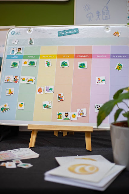 Avec nos programmes chargés, les enfants sont parfois un peu perdus dans le planning de la semaine et petits, ils n’ont pas encore la notion d’heures et de temps. Cathy-Laure, a créé ces calendriers afin de permettre aux enfants et aux parents de se repérer. Un tableau aimanté, de petits magnets avec les activités de la vie courantes. Ce qui en fait le charme ? C’est que les magnets sont personnalisables. Vous avez le choix entre plusieurs formules différentes, contenant un nombre d’aimants différents. Ils sont envoyés dans une boite de rangement afin qu’ils ne se retrouvent pas éparpillés partout. L’espace de personnalisation est extrêmement bien fait, d’abord vous avez une boite de dialogue qui vous explique comment cela fonctionne, ensuite, vous pouvez choisir le type de date(anglais, cursive, majuscule). Il y a plusieurs catégories de choix des magnets : le quotidien(école, maison, réveil, toilette, goûter), les lieux de culte, la famille, les activités, anniversaires, départ en vacances, les émotions, la météo, les saisons. Chaque période de la journée est à choisir, le visuel de votre maison, si vous voulez un petit garçon ou une petite fille, les rendez-vous, vous pouvez même choisir le parent, le grand-parent qui vous ressemble le plus ! Un tableau 100% adapté à la vie de votre famille.