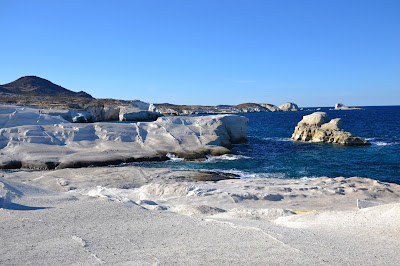 Hé bien, sachez que nous n’avons absolument jamais trouvé la route qui menait à cette ville. J’avais lu sur internet qu’il y avait des sources chaudes, et je voulais absolument voir ça. Sauf qu’on a eu beau tourner, on n’a jamais rien trouvé. Nous pensons que la route qui y amenait était bloquée par un énorme chantier. On a essayé par la ville de Pollonia, mais la rue était bloquée en sens interdit dans notre sens. Par contre, on a trouvé un coin assez sympa caché derrière Pollonia, je ne saurai pas vous dire quelle plage c’était (peut-être Polychronis ou Cape Pelekouda). Il n’y avait pas de sable mais des rochers sur lesquels on a mangé un bout. Il est possible de s’y baigner.