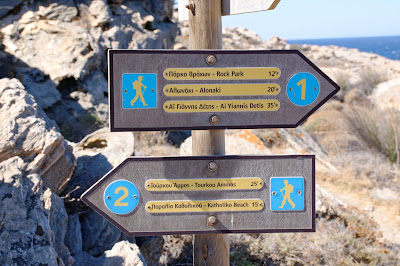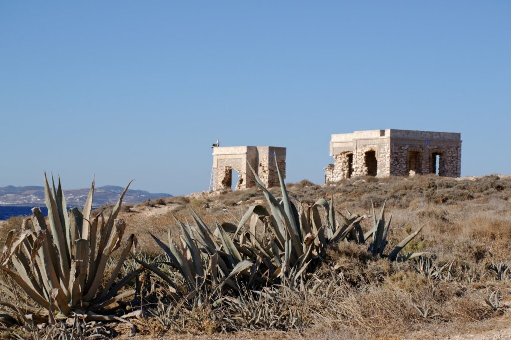 Pour accéder à ce phare qui se trouve au Cap Korakas, il vous faut suivre la route qui mène à Kolimbithres et suivre les panneaux (qui finissent par disparaître comme toujours). Continuez donc votre route le long de la mer car le phare se trouve tout au bout et il n’y a qu’une seule route : celle qui mène là-bas. Vous passerez au milieu d’une sorte de décharge à bateaux (des bateaux énormes pas de petits bateaux), en fait, je pense qu’ils étaient surtout là pour être réparés ! Continuez tout droit et vous arriverez près d’un camping, sur une petite place en terre. En montant un peu, vous découvrirez les panneaux indiquant le chemin de randonnée.
