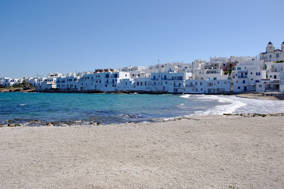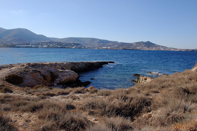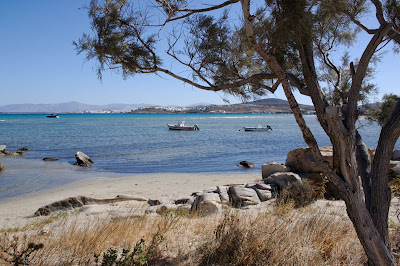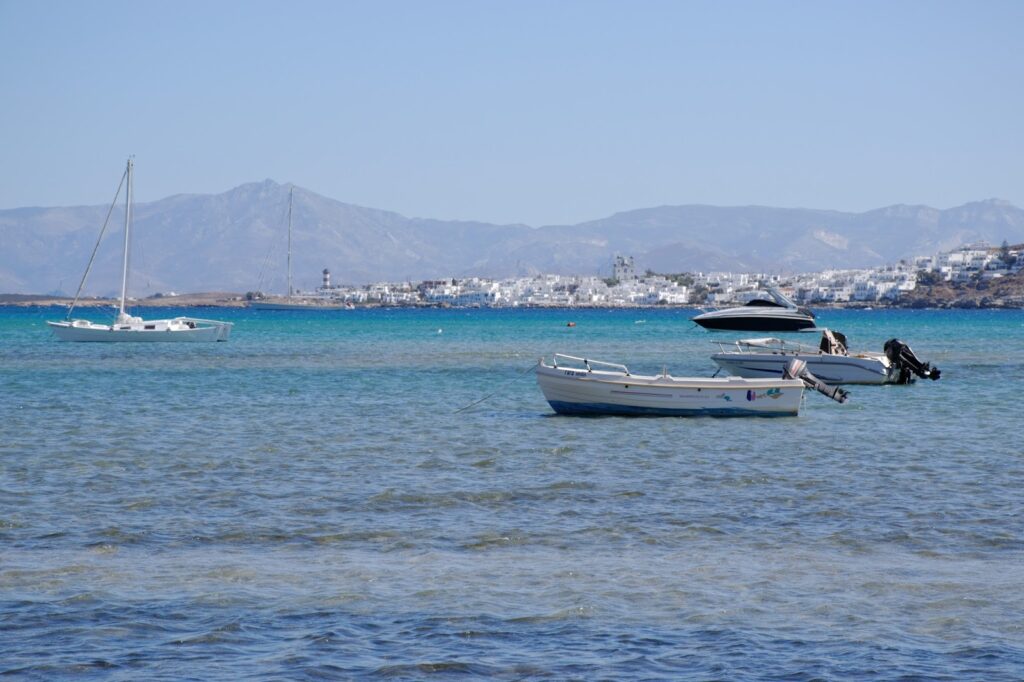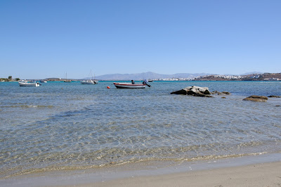 Jolie petite plage qui longe la route pour aller (ou revenir) à Piso Livadi. L’eau est transparente et donne sur Naousa juste en face.