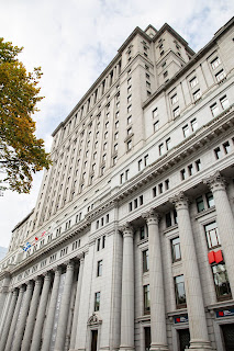 Notre troisième jour à Montréal était en fait à la fin de notre séjour. Nous rendions la voiture à Montréal le lendemain (on avait du décaler notre départ mais je vous expliquerait tout ça dans mon article quant à l’organisation pour nous rendre à New-York City), mon amoureux voulait repasser chez sa sœur avant notre départ vers les États-Unis et notre bus repartait lui aussi de Montréal. Nous sommes arrivés du parc national de la Mauricie dans la matinée ou en début d’après-midi. Nous n’avons pas risqué de prendre la voiture pour parcourir la ville (on a pris un foutu PV par contre, comme je vous le disais dans mon article sur l’organisation du séjour). Comme les premiers jours on a fait les trajets en métro/bus, on a pris le pass 1 jour, il coûte 10$/personne et il est valable 24h (par une journée de 00h à 00h mais bien 24h). On en a profité pour partir en amoureux à la découverte de la ville. On s’est retrouvé dans un quartier vraiment chouette, le plus récent de la ville sûrement mais j’étais émerveillée de tout ces beaux et immenses buildings. Je découvrais un tout autre Montréal qui, bien que je sois plutôt penchée sur les vieilles villes et les villages, me plaisait bien plus que ce que nous avions vu jusqu’ici. Je marchais la tête en l’air, à regarder les lumières se refléter dans les buildings. De vieux immeubles, au milieu des neufs. Nous avons repéré la basilique Notre-Dame de Montréal sur Maps et on y est allés juste à temps. Ils étaient en train de fermer les grilles et le gardien nous a fait signe de vite entrer. Heureusement. La basilique est une pure merveille. Elle est d’une rare richesse et d’une rare beauté. Vous en prendrez plein les yeux en entrant. Tout est travaillé, minutieux. Elle est d’une couleur bleue comme on en voit rarement (probablement jamais) dans un tel bâtiment. Il existe même des spectacles de nuit. L’extérieur était en travaux, du moins une partie, mais c’est l’intérieur qui vaut plus le coup. Pensez juste à vérifier les horaires des messes et d’ouverture au public. C’est réellement un incontournable de la ville. Le tarif d’entrée est de 8$ par adulte et 5$ pour les 7/17ans. C’est à peu près la seule balade que nous avons faite car après il nous fallait rentrer faire des machines, ranger et refaire nos valises, etc.