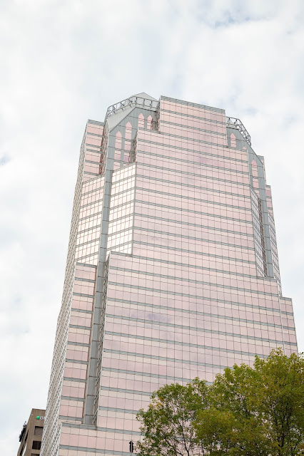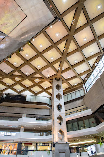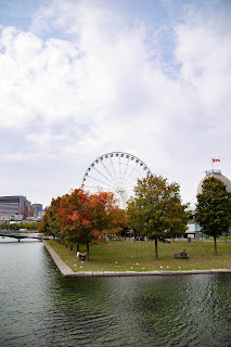 L’après-midi on s’est vraiment bien rattrapés. On a énormément marché, c’était super chouette et cette sensation de matinée gâchée s’est vite envolée. Seulement nous avons découvert une ville en travaux. Routes en travaux, immeubles en travaux, rénovation ou construction. Beaucoup d’endroits délabrés, un peu laissés à l’abandon. J’ai vraiment eu du mal à voir le beau. Nous sommes rapidement passés par la vieille ville de Montréal, l’endroit avait l’air plutôt charmant. Ensuite on a filé vers le port, il y a une grande roue plantée là, au milieu d’un écrin de verdure quand tout le reste semble tant industrialisé. Vous pouvez aller jusqu’à la grande roue ou tout simplement faire le tour du petit ilot sur les passerelles qui longent le fleuve. C’était assez sympa comme balade, on était assez éloignés de la route et on avait la sensation d’être un peu sortis de la ville. Annabelle nous a aussi amené au Complexe Desjardins. C’est un centre commercial assez original car il y a une énorme fontaine à l’intérieur. Elle est toute illuminée et si vous arrivez au bon moment, avec un peu de chance vous la verrez monter jusqu’au plafond. Nous sommes aussi passés devant l’Église Marie-Reine. Évidemment, j’étais à nouveau en short et débardeur, j’ai donc du user de stratégie pour pouvoir me couvrir un minimum et entrer et je suis restée sur le seuil de la porte. Elle est vraiment très élégante. A peine le seuil passé tu ressens un élan de paix et d’admiration. Elle est bien moins colorée que sa grande sœur la basilique mais elle était de couleur claire. Le plafond était magnifique et c’est une Église lumineuse comme on en voit peu souvent aussi.