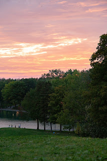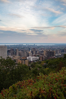 Puis nous avons filé au Mont-Royal. On a fait la montée en bus, et franchement heureusement parce que ça monte sec. J’avais demandé à ce que nous y soyons avant le couché du soleil pour avoir de belles lumières. Annabelle nous a amenés là-haut pile aux bonnes heures ! La vue est magnifique, le lac aux Castors est aussi très joli. Il a tout d’un lac artificiel mais voir le soleil descendre ici c’était apaisant. On a croisé plein, plein, plein de ratons laveurs. Ils sont à la fois intrigants et flippants. Surtout quand on les a croisés en bande en plein milieu de la nuit lorsque nous sommes redescendus dans le noir à travers la forêt (franchement je n’étais vraiment pas sereine d’être dans cet immense parc en plein milieu de la nuit). Ce qui est sûr, c’est que le parc du Mont-Royal est l’endroit idéal pour s’échapper du centre-ville.