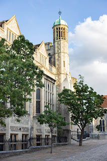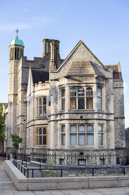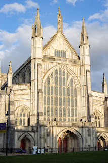C’est en fin de journée que nous avons découvert Winchester. Après avoir réservé (à la dernière minute et pas hyper facilement) un hôtel en plein centre ville, nous sommes allées nous balader dans les ruelles. A notre grande surprise, à seulement 17h, tout était déjà fermé. Pourtant, nous étions en semaine. Si au départ ça nous a un peu déstabilisées, nous avons très vite su apprécier le calme de la ville, le vide des ruelles et la beauté des vitrines de magasins. L’endroit qui a su le plus attirer notre attention, hormis la rue principale, c’est le château. Il n’a rien de ressemblant aux châteaux que nous avons l’habitude de voir. D’ailleurs, ces façades atypiques ont l’air plutôt populaires dans ces villes car nous avons croisés plusieurs bâtiments ayant ce même type de façade. De loin, on dirait que les murs ont été recouvert de coquilles d’huitres, de près, on se rend bien sûr compte qu’il s’agit d’une pierre extrêmement noire. Winchester a aussi le mérite de posséder la plus grande cathédrale médiévale d’Europe. Vue de l’extérieure, elle ne m’a pas parue plus grande qu’une autre, mais nous ne sommes pas entrées à l’intérieur.