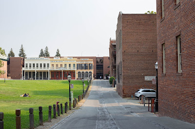 Cet endroit est un espace resté bien conservé, hors du temps. A peine arrivées et garées là-bas que nous avons été séduites par la vieille ville. Vous avez la sensation fort agréable d’avoir transité dans une autre époque, une époque révolue mais pas tout à fait. En baladant dans la ville, on s’attend presque à voir sortir un cowboy du Saloon. La seule chose que j’ai trouvée dommage, c’est que ça ne soit pas piéton car lorsque les voitures passent, le charme se rompt mais seulement momentanément. Les parkings sont payants mais pas forcément très chers. Vous avez de nombreuses boutiques, il vous faut fouiller en entrant dans les magasins, des restaurants, des musées et un très vieux train en extérieur. Si j’en crois mes recherches, il fonctionne encore et vous pouvez embarquer dedans pour un petit voyage sur les rives du fleuve.