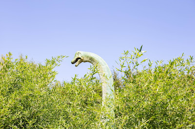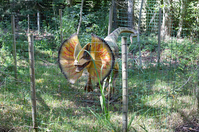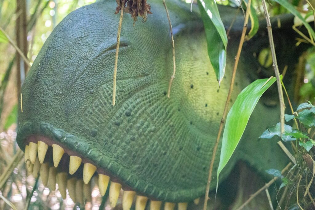 L’objectif de base de notre déplacement, c’était d’aller voir les dinosaures. Le parc est situé à Viry, à 30 minutes de Genève et 1h d’Annecy (par les petites routes). En arrivant là-bas, la grande me dis déjà « Maïlys, t’es sûre que c’est ici ? » mais elle est vite attirée par les dinosaures, exposés déjà dès l’entrée. Je paye nos entrées et nous pénétrons dans la jungle. Des tables de pique-nique sont installés, les premiers pas donnent déjà l’illusion d’un endroit laissé totalement à l’abandon. Une pancarte sur le panneau d’affichage nous explique le mot jungle comme un endroit totalement sauvage. Sur le coup, je ne comprend pas trop la signification de cette précision. Les enfants s’enfoncent entre les arbres, à la recherche des dinosaures. Il courent, et moi, je prend mon temps. J’entends leurs cris, leurs appels et je les vois, déjà partir vers le prochain. A mon tour, je découvre les dinosaures, derrière les grillages, étouffés par la végétation, les arbres morts, les ronces. Je comprends maintenant. Nous passons de dino en dino, les enfants sont calés sur le sujet et ils s’exclament « Oh un Brachicephalosaurus », « et là Maïlys, c’est comme dans notre livre », « Oh Jacques, regarde, un T-Rex ! ». En réalité, les dinosaures sont très éloignés les uns des autres, entre chacun, l’on retrouve des animaux. Certains ont été sauvés de l’abandon par leurs propriétaires, d’autres, comme les kangourou ou les lamas sont là depuis 2004. Leurs enclos, leurs cages, sont dans un état qui fait peine à voir, eux aussi. Certains enclos sont assez vaste, mais les animaux sont plus nombreux dedans, et l’état reste quand même moyen. Le petit dernier se cramponnait à ma main, quand l’épaisseur de la jungle cachait la lumière et que l’ombre s’intensifiait. Quant à la grande, elle n’est revenue vers moi qu’une fois, en hurlant et à deux doigts de pleurer, quand elle s’est retrouvée face à une autruche. Les T-Rex ne l’impressionnent pas, mais l’autruche oui. Il était annoncé 1h30, en 30 minutes, les petites jambes de 3 et 4 ans ½ avaient déjà fait le tour.« C’est déjà fini Maïlys ? » Oui, moi aussi je suis déçue. Alors je les ai remis dans la voiture, et nous avons filé vers une toute autre destination, un tout autre univers, vers des créatures beaucoup, beaucoup moins grandes.
